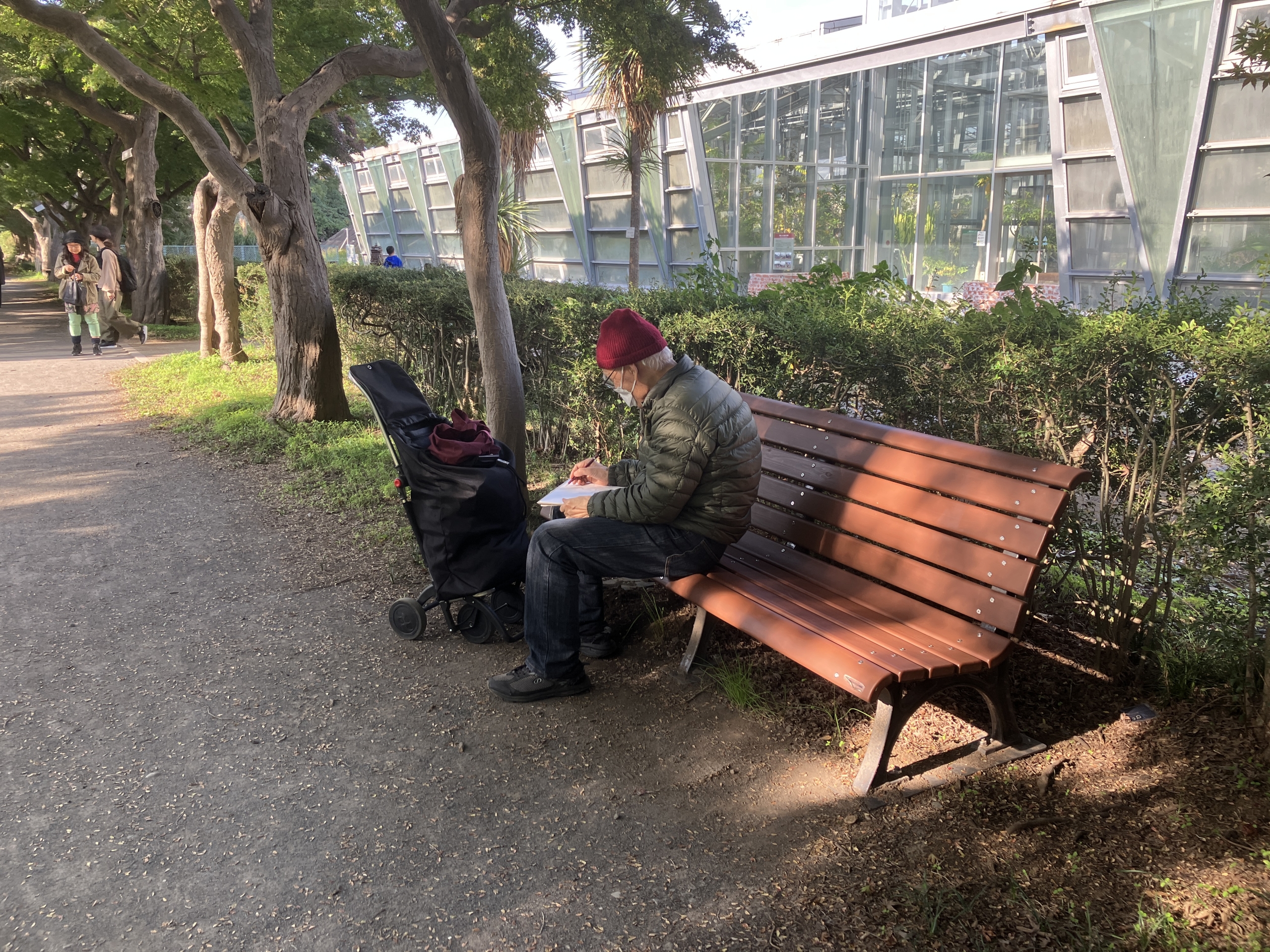 他に建物、水辺、日本庭園など充実していますので、樹木以外のテーマでも楽しめます。座るベンチも多く、描くポイントには困らないと思います。